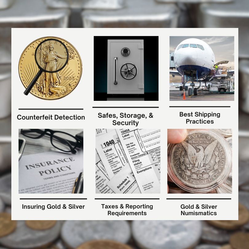 We cover everything you need to know about buying and selling gold and silver. This includes learning about related topics, like storage, taxes, shipping, insurance, security, negotiation, and much more.